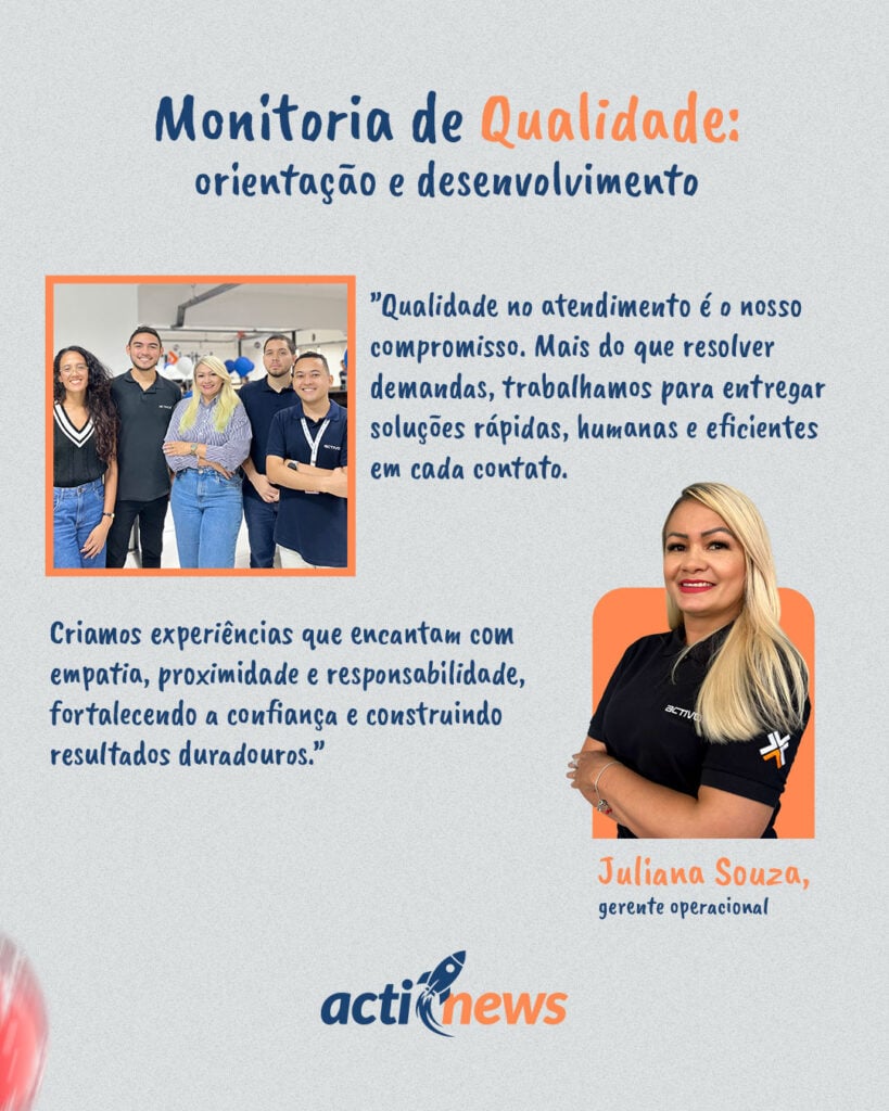 Ao longo das edições da Actinews, seguimos abrindo as portas das áreas que fazem a Activox rodar com excelência todos os dias. Nesta edição, o destaque vai para um time que atua nos bastidores mas com impacto direto no atendimento, o setor de Monitoria de Qualidade.