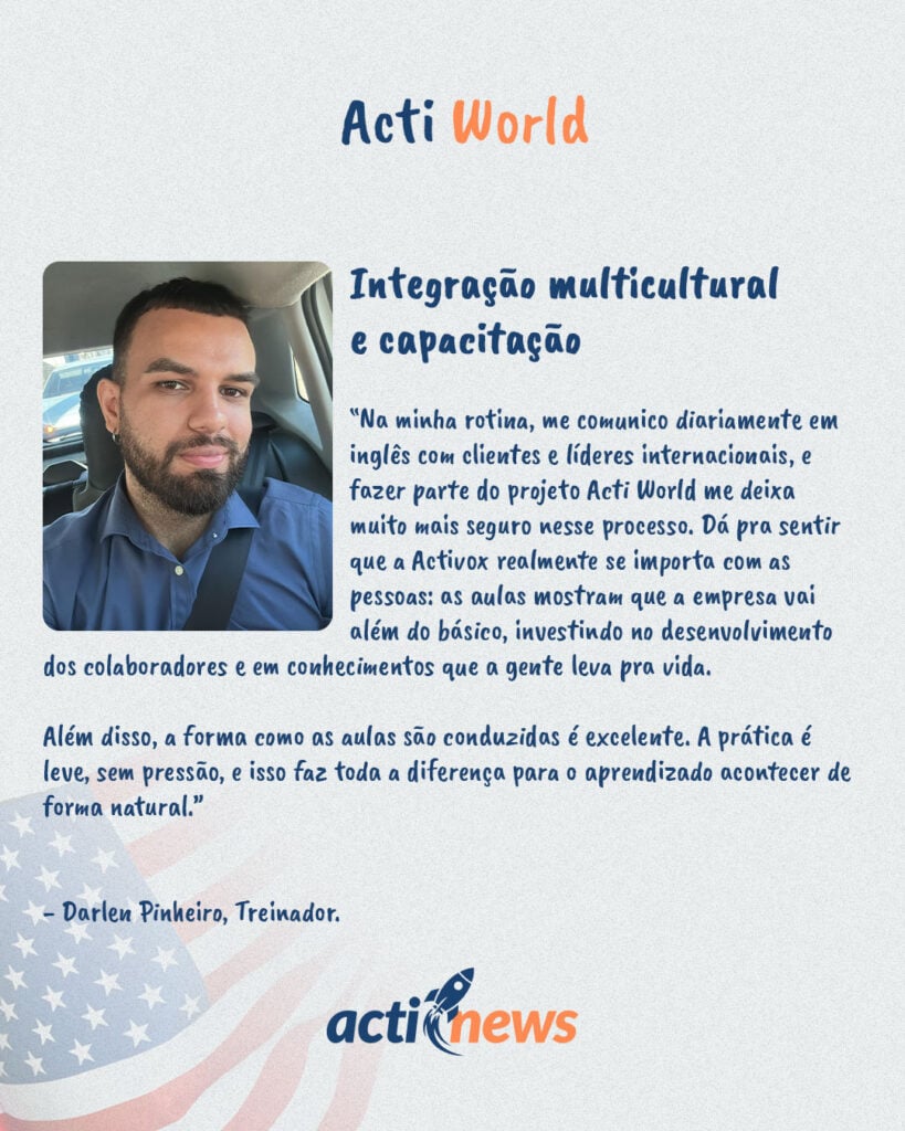Além de incentivar o acesso a novos idiomas e culturas, o Acti World tem como objetivo fortalecer o relacionamento com clientes internacionais e preparar a empresa para os próximos passos de expansão, conectando pessoas, mercados e oportunidades.